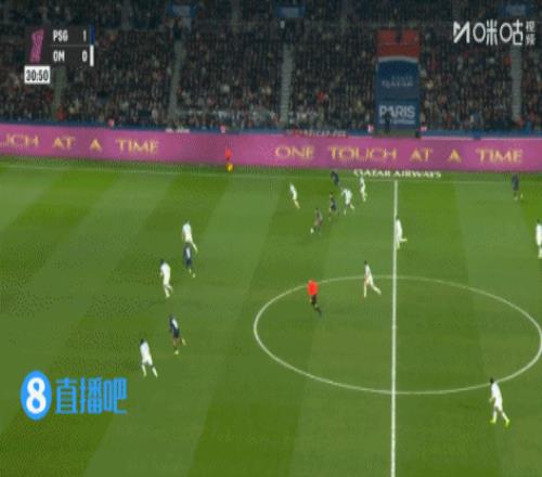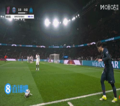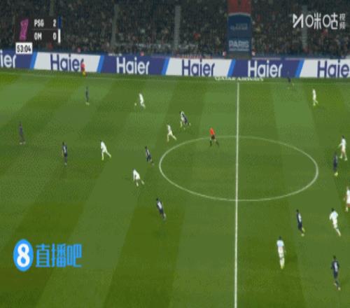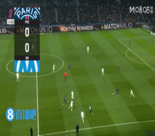 上半場傷停補時3分鐘,半場結束,巴黎圣日耳曼暫2-0馬賽。