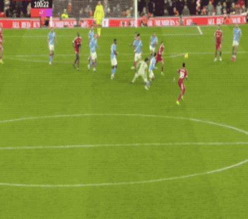 第100分鐘,利物浦進行最后一搏,本方半場空空如也,謝爾基中圈傳球,索博斯洛伊拉拽哈蘭德,哈蘭德也還以顏色,兩人都沒有碰到皮球,皮球緩緩滾進球門。