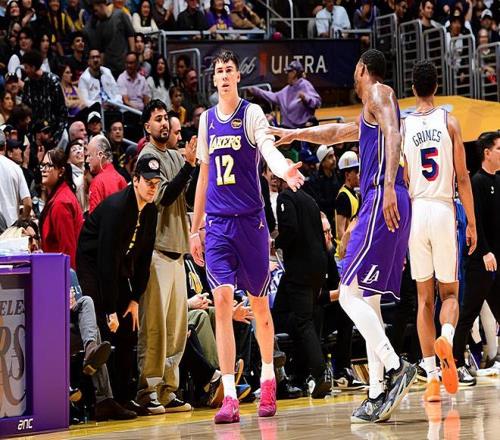 本場比賽中,湖人雖然取得了比賽的勝利,但是球隊的先發鋒線新星杰克-拉拉維亞(Jake LaRavia)的表現并不理想。拉拉維亞全場出場27分28秒,投籃5中1,三分線外3中0,僅得到了2分4籃板1助攻2蓋帽的數據,還有4次失誤和1次犯規,正負值為+2。一方面,我們需要對拉拉維亞在防守端的態度表示認可,他也確實是在防守端通過自己的積極性起到了一定的作用,給對手制造了一些壓力。然而另一方面,拉拉維亞在進攻端的表現也確實是太慘不忍睹了一些。拉拉維亞的外線投籃感覺非常糟糕,而且他也不具備足夠的自主得分能力??傮w來看,拉拉維亞的表現顯然還是差了一些的,幸好湖人不少球員的手感都相當不錯,拉拉維亞的糟糕表現也沒有影響到球隊的這場勝利。
