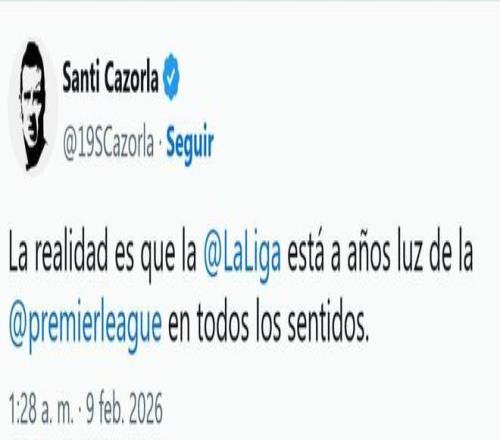 在個人社交平臺上,卡索拉毫不留情地寫道:“現實是,西甲在各個方面都與英超相差好幾個層級。”這條簡短卻尖銳的發言迅速引發熱議,并在網絡上廣泛傳播。