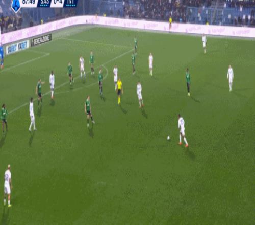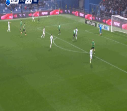 第28分鐘,勞塔羅回撤分球,迪馬爾科高速插上傳中,小圖拉姆前點捅射得手,國際米蘭將比分擴大到了2-0。這是迪馬爾科本場第二次助攻。上半場結束,國米射門、控球、威脅進攻全面占優,薩索洛只能被動防守,找機會打反擊。