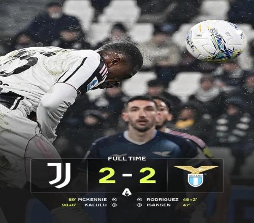 拉齊奧一度2-0領先,尤文在絕境中由麥肯尼和卡盧盧連追兩球,補時完成2-2絕平。