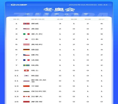 冬奧會獎牌榜:中國仍1銅排第13,挪威3金領(lǐng)跑,美國2金第二