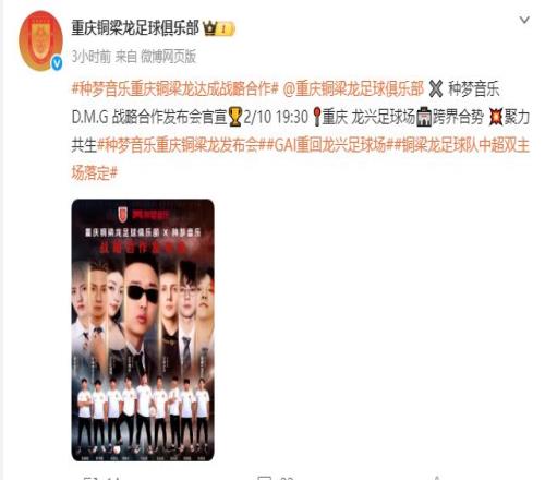 此前,重慶球迷已經通過多種渠道獲悉,重慶銅梁龍征戰中超的主場,將設在重慶龍興足球場。不過,俱樂部至今尚未官宣。而今,隨著重慶銅梁龍與種夢音樂戰略合作發布會的舉行,相關答案進一步明確。因為俱樂部在發布相關信息時,所設信息標簽之一,就是“#銅梁龍足球隊中超雙主場落定#”。顯然,舉辦此次戰略合作發布會的地點——重慶龍興足球場,就是雙主場之一。
