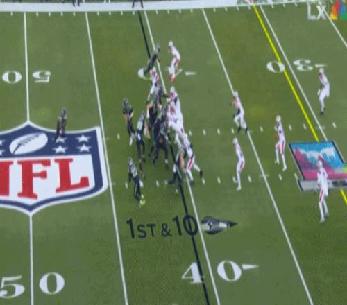 第三節還有7分鐘時,愛國者隊米爾頓·威廉姆斯擒殺達諾德,海鷹選擇棄踢。