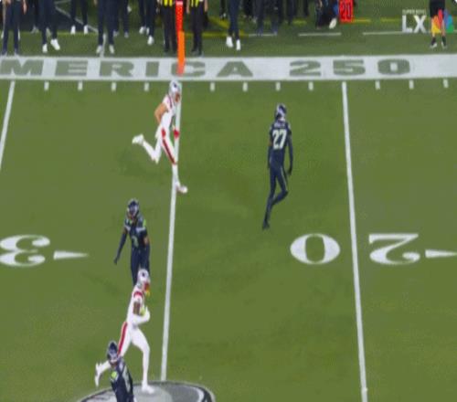 第四節還剩2分半時,梅耶傳給史蒂文森,后者在皮球距離地面只差毫厘的情況下接球完成達陣,愛國者13-29落后海鷹。