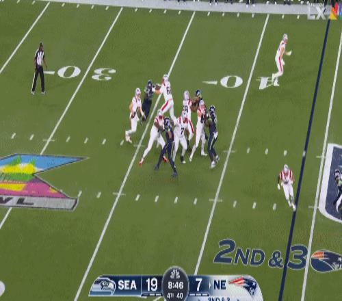 海鷹與愛國者曾在2015年第49屆超級碗相遇,最終愛國者28-24擊敗海鷹。當時比賽造就一幕名場面,海鷹比賽最后時刻推進至愛國者一碼線,然而在只要達陣就幾乎取勝的情況下,海鷹并沒有讓林奇沖球,而選擇了讓四分衛威爾遜傳球,最終球在一碼線被抄截。