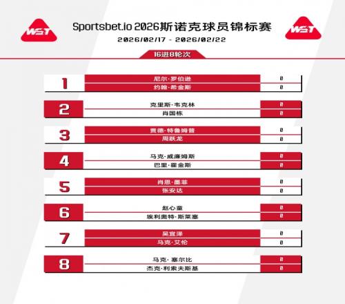 體育播報2月9日宣 2026斯諾克球員錦標賽簽表確定,趙心童vs斯萊塞,特魯姆普vs周躍龍。
