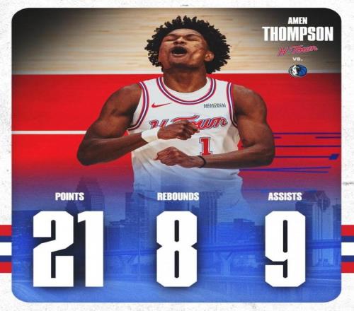 史密斯的狀態更是起伏劇烈:手感火熱時,他像極了縮小版的杜蘭特,內外開花、無解單打;可一旦投籃手冷,整個人就變得迷失,攻防兩端都找不到節奏。伊森的健康問題依舊是老大難,反復的傷病讓他很難保持連續性,場上存在感時有時無。在這群年輕人中,唯有阿門湯普森穩定向上,成為火箭當下最可靠的潛力星。賽季初范弗利特報銷,球隊被迫讓阿門頂上控衛位置。起初的適應期相當痛苦,前20場比賽阿門的表現可以用“掙扎”來形容:防守強度明顯不如上賽季那么兇悍,進攻端更是猶豫不決,持球推進時經常出現停頓,傳球時機也把握不準。那段時間,他的場均數據和正負值都處于低谷,許多人開始質疑他是否真的適合組織后衛角色。
