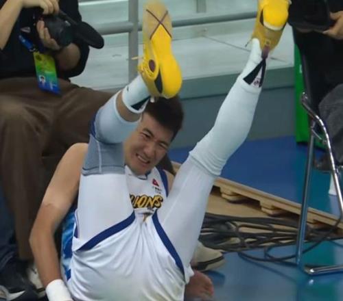 隨后,孫銘徽就躺在地上,捂著自己的腳,顯得十分痛苦,隊醫對他進行簡單治療之后,他還是無法行走,最后,隊友將孫銘徽背出了賽場。