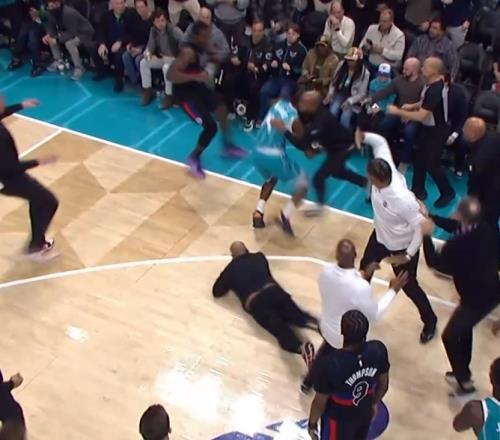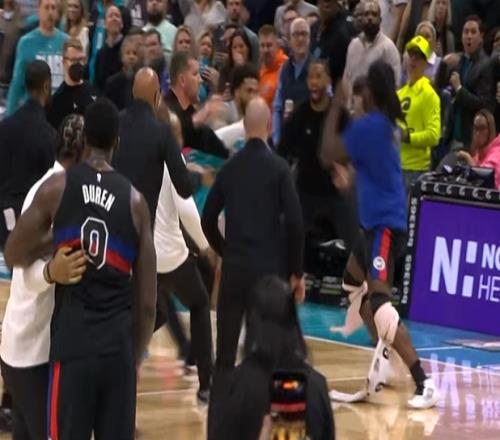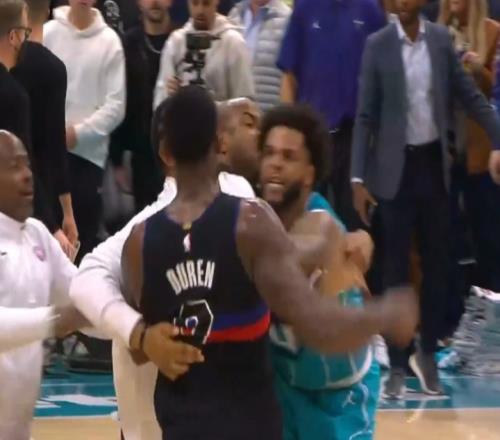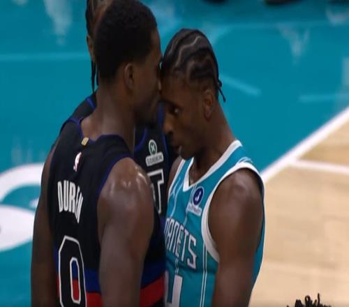 NBA常規賽,活塞客戰黃蜂,第三節7分06秒,杜倫背打造成迪亞巴特犯規。兩人發生口角后,迅速演變為頂牛,最后擴大為多人超大沖突!最終,迪亞巴特、布里奇斯、杜倫、斯圖爾特四人被驅逐出場!