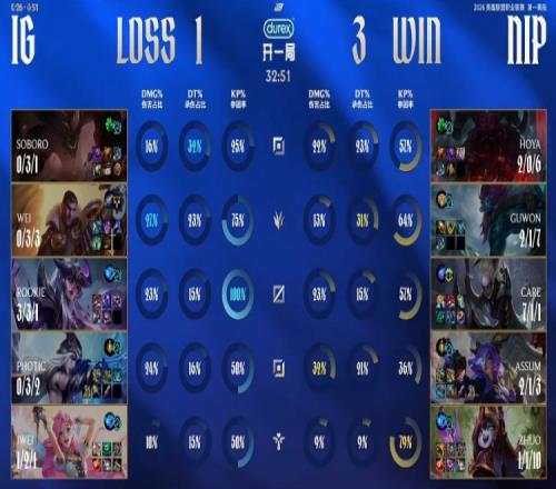 后期iG正面毫無還手之力,只能再讓出第二條大龍,NIP中路強上iG高地,Care皎月大招拉iG三人,又是iG野輔被融化,Assum高地閃現(xiàn)向前被Rookie推大擊殺,NIP回頭拿到土龍魂后再次沖上iG高地,終于推平iG基地拿到比賽勝利晉級淘汰賽,iG則跌入敗者組。