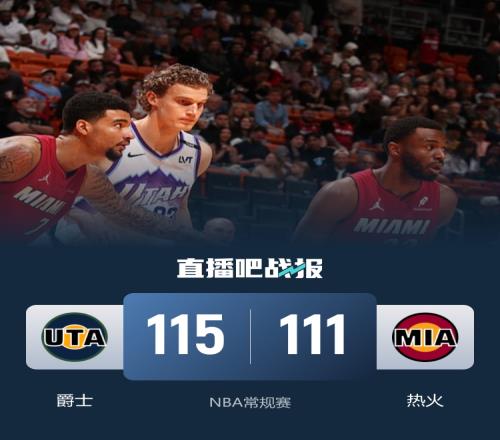 比賽上來(lái),兩隊(duì)短暫拉鋸后熱火開(kāi)始發(fā)力,分差很快就達(dá)到了兩位數(shù),之后的比賽雖然爵士有追分勢(shì)頭,但熱火新秀亞庫(kù)喬尼斯外線神準(zhǔn)連續(xù)遠(yuǎn)投給出回應(yīng),不過(guò)次節(jié)熱火的命中率下滑明顯,單節(jié)僅拿到20分,半場(chǎng)過(guò)后爵士已經(jīng)反超9分;下半場(chǎng)回來(lái),熱火狀態(tài)回暖并逐漸迫近比分,末節(jié)雙方再次陷入膠著,比賽懸念保持到了最后,關(guān)鍵時(shí)刻森薩博三分反超,亞庫(kù)喬尼斯遠(yuǎn)投不中,最終爵士險(xiǎn)勝熱火止住連敗。