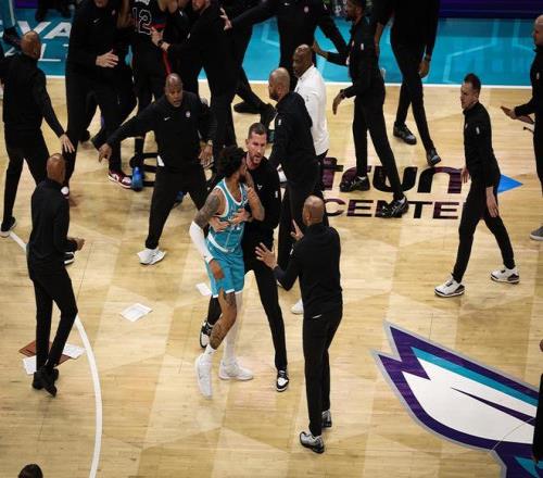 前一場擊敗老鷹,隊史首次拿下9連勝的黃蜂隊迎來與東部第一活塞隊的較量,結果兩隊不僅在場上打得難分難解,還爆發大規模沖突,一口氣4人被驅逐出場。