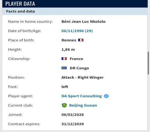 恩科洛洛的個人頁面中顯示,他于2026年2月6日加盟國安,合同有效期至2029年12月31日。