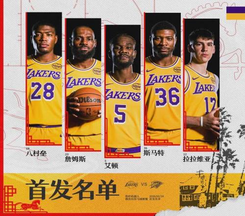 北京時(shí)間2月10日,NBA常規(guī)賽:湖人主場(chǎng)vs雷霆。東契奇和亞歷山大因傷休戰(zhàn),雷霆二當(dāng)家杰倫-威廉姆斯本場(chǎng)復(fù)出。截至今天賽前,雷霆40勝13負(fù)聯(lián)盟第一,領(lǐng)先活塞只有0.5個(gè)勝場(chǎng)。湖人32勝19負(fù)西部第五,和第四的火箭持平。