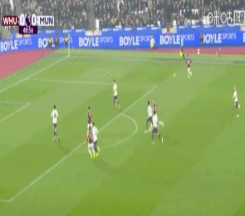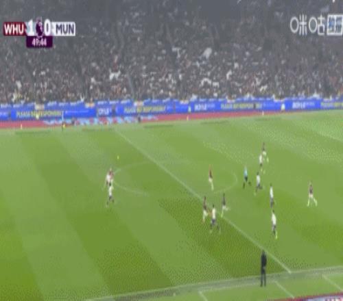 第49分鐘,紹切克門前插上搶點推射破門,西漢姆聯(lián)1-0曼聯(lián)
