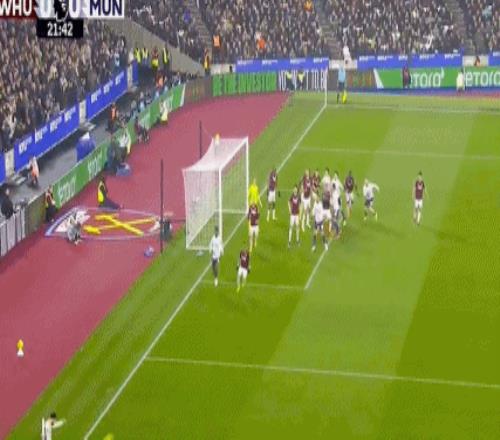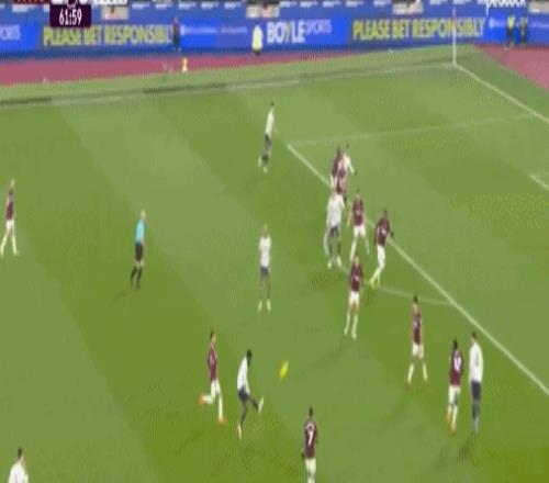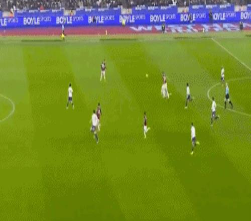 第50分鐘,迪烏夫后場長傳,盧克-肖冒頂,紹切克策動反擊,隨后接應鮑恩的傳中,門前巧射命中,西漢姆聯打破僵局,1-0!