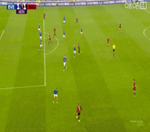 第61分鐘,特呂費爾左側傳后點,拉揚頭球破門扳平,伯恩茅斯1-1埃弗頓