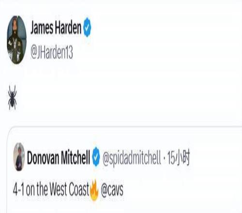 哈登在末節(jié)10分鐘里得到6分4籃板4助攻。過(guò)去兩場(chǎng)比賽,騎士第四節(jié)的進(jìn)攻效率高達(dá)142.0。賽后,哈登轉(zhuǎn)發(fā)了米切爾的慶祝勝利的社媒,配上了蜘蛛的表情,而那正是米切爾外號(hào)(蜘蛛俠)的標(biāo)志。