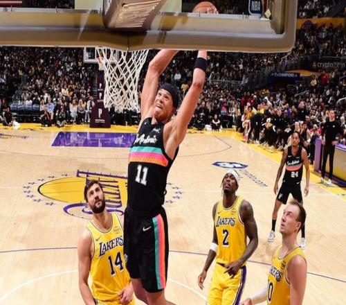 末節,克內克特拋投得分,奧利尼克上籃得分。蒂米三分命中,蒂耶羅扣籃2+1,蒂米又連得4分,把分差縮小到21分。約翰遜扣籃,麥克勞克林三分命中,奧利尼克上籃得分,麥克勞克林搶斷得分,馬刺回敬一波9-0。布朗尼三分命中,卡特-布萊恩特中投得分。布朗尼拋投命中,哈珀上籃得分。最終,馬刺輕松擊敗湖人,拿下5連勝。