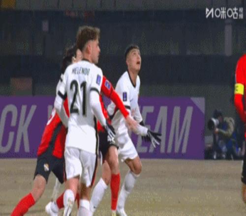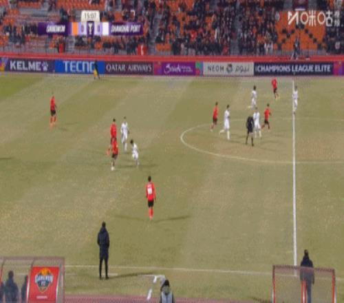 第16分鐘,牟在現右路下底倒三角傳球送入禁區,跟進的金大元搶點射門打偏了,這球主裁判鳴哨示意江原FC有越位。↓