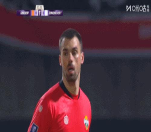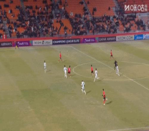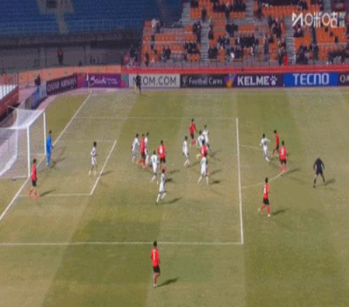 第21分鐘,馮勁接到隊友直塞,禁區內扣過防守球員后一腳低射,這球擊中了邊網。↓