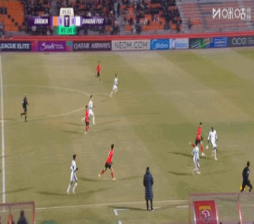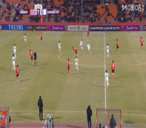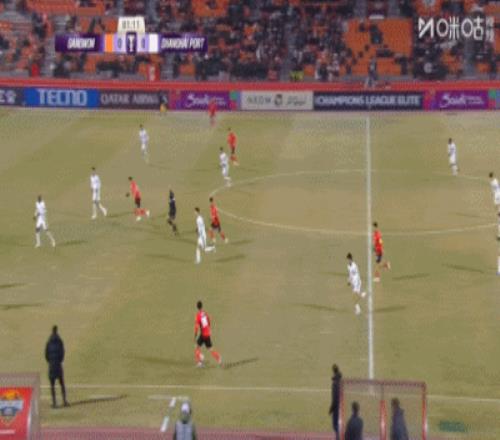 第6分鐘,上海海港反擊機會,劉祝潤接到隊友頭球擺渡,弧頂處起腳攻門打偏了,不過這球他也越位在先。↓