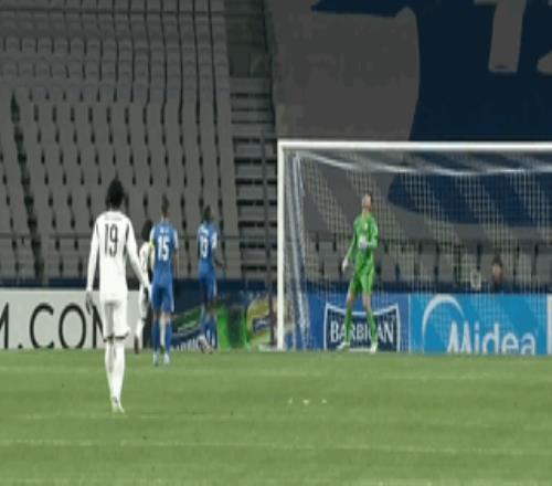 第76分鐘,申花差點攻破對手大門!陳晉一前場被犯規,申花獲得定位球,替補登場的高天意將球旋向禁區,1米95的蓋伊高高躍起頭球攻門,但他的頭球擦著立柱出了底線!