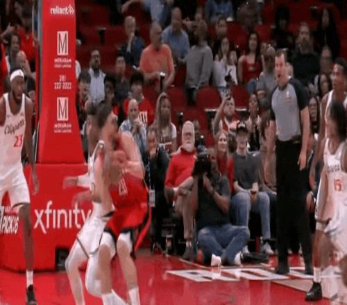——火箭謝潑德阿門申京單側(cè)三人轉(zhuǎn),嚇得快船傾斜一側(cè),電風(fēng)扇空位遠(yuǎn)射。這是攻。