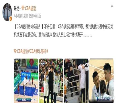 然而,事實上,這一次CBA季中杯,雖然對抗非常激烈,像孫銘徽等人都意外受傷。可真正令人意想不到的是,就連裁判也意外受傷了。在廣廈與山東這一場比賽的第二節,裁判在無對抗的情況下,左腿意外受傷,這也導致比賽被迫中斷。隨后,在醫護人員的攙扶下,裁判直接離開了現場,這也讓現場和電視機前的觀眾看得目瞪口呆,縱觀過去幾十年里,這裁判意外受傷還真是頭一遭。