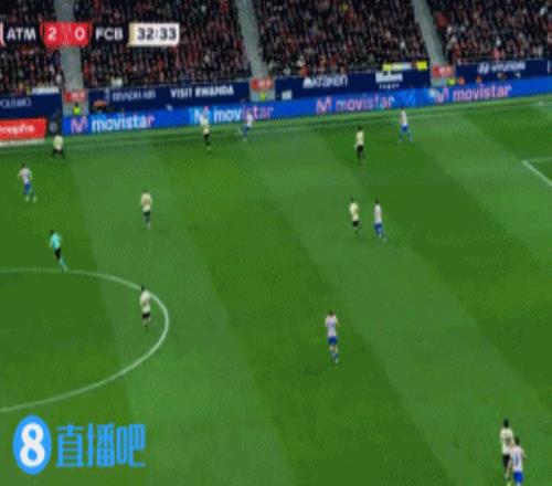 第30分鐘, 馬競(jìng)再次打出反擊,小西蒙尼右路插上橫傳,格列茲曼推射打高。↓
