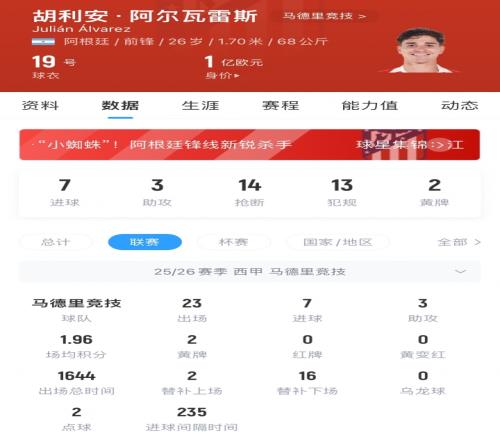 阿爾瓦雷斯現年26歲,身價高達1億歐,他與馬競的合同2030年到期。據此前多家媒體報道,他在今夏將成為多家豪門爭搶的對象,其中包括阿森納、切爾西、巴薩等隊,據悉馬競要價超9500萬歐。