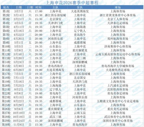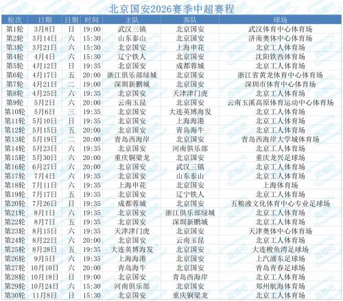 體育播報(bào)02月14日宣 中足聯(lián)官方公布了2026賽季的中超完整賽程,新賽季中超將于3月6日開(kāi)賽,11月8日結(jié)束。揭幕戰(zhàn)為3月6日19點(diǎn)35分成都蓉城vs深圳新鵬城,第2輪將迎來(lái)山東泰山vs北京國(guó)安的焦點(diǎn)大戰(zhàn)。