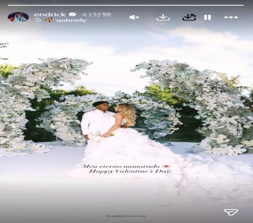 體育播報02月14日宣 今日巴西球星恩德里克發布社媒,曬出與妻子米蘭達的婚禮現場合照,并配文:我永遠的戀人,情人節快樂。
