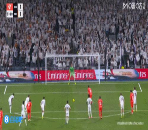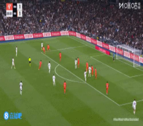第20分鐘,赫伊森禁區內魯莽放鏟犯規被判黃點,奧亞薩瓦爾主罰點球命中!皇馬1-1皇社↓