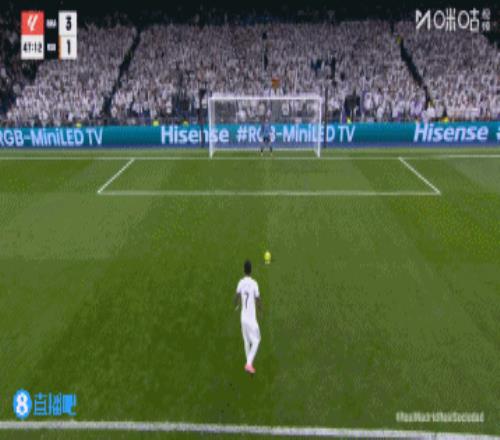 第48分鐘,維尼修斯禁區左側突破再次被阿蘭布魯放倒,主裁再次判罰點球,維尼修斯再次跳步點球命中!皇馬4-1領先↓