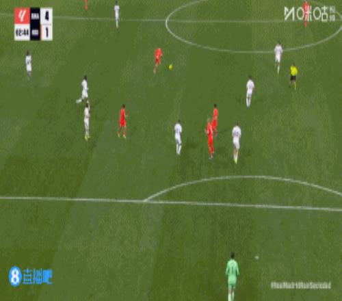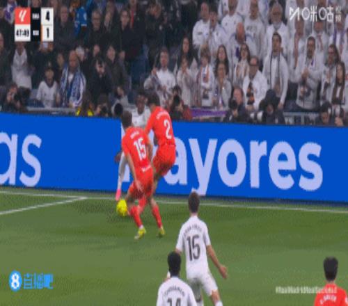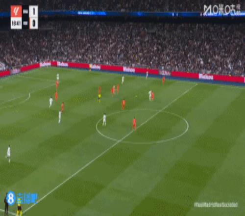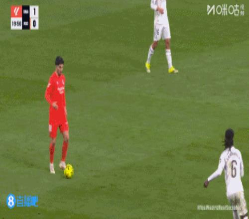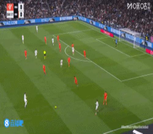 第45+4分鐘,皇馬后場長傳進攻,右路巴爾韋德跟進橫掃門前,貢薩洛絕佳機會門前踢飛↓