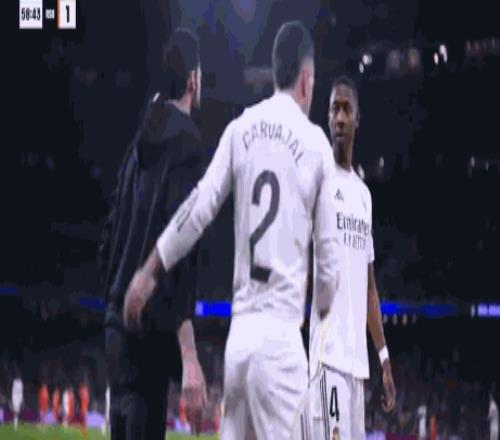 第59分鐘,皇馬換人,阿拉巴和卡瓦哈爾替補登場