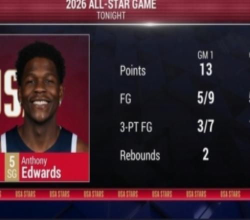 體育播報2月16日宣 NBA全明星正賽循環賽2場戰罷,美國新星隊目前1勝1負。兩場比賽,美國新星隊球員愛德華茲均有...