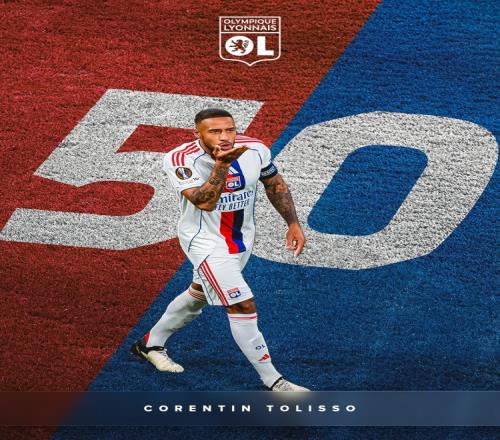 這是托利索在正式比賽中為里昂攻入的第50粒進球,里昂官方社媒曬出海報,祝賀他達成這一里程碑。