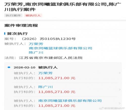 其中同曦俱樂部執行了約1108萬,同曦籃球俱樂部投資人陳廣川夫婦合計被執行了約2216萬。