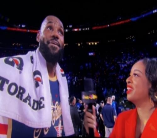 體育播報2月16日宣 NBA全明星正賽循環賽,美國星條隊42-40險勝美國新星隊,詹姆斯賽后在場邊接受了媒體采訪。談...
