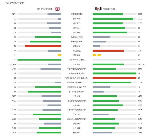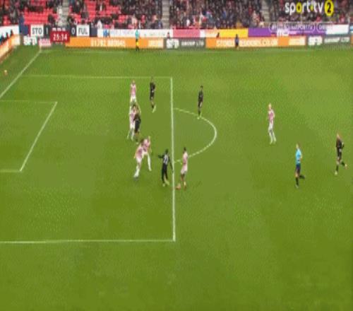 第84分鐘,斯托克城后場被搶斷,里德破門,富勒姆2-1