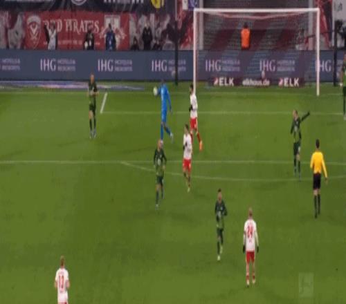 第70分鐘,格拉巴拉開球失誤,格魯達助攻迪奧曼德破門,萊比錫1-1沃爾夫斯堡