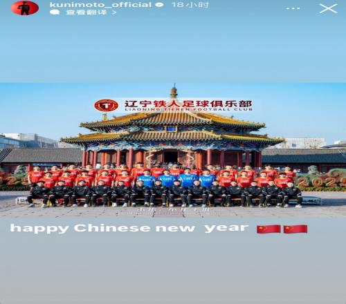邦本宜裕在社媒曬出了遼寧鐵人的全家福,他為此配文“中國新年快樂”,并附上了五星紅旗的表情。