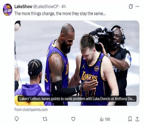 湖人媒體Laker Show發(fā)布了一篇文章,他寫道:事物變化越多,卻越是保持不變。這篇文中珍妮-巴斯透露目前湖人的重點(diǎn)是圍繞東契奇建隊(duì)而不是41歲的詹姆斯,雖然詹姆斯自2018年加盟湖人后一直是球隊(duì)門面。(因?yàn)檎材匪?260萬(wàn)的合同即將到期,湖人在今夏可以清理出很多薪金空間)