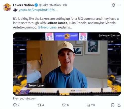 根據(jù)湖人記者Trevor Lance的分析,湖人隊(duì)今夏會(huì)迎來(lái)一個(gè)輝煌的夏天,他們需要處理好詹姆斯的合同,東契奇、揚(yáng)尼斯的潛在合作也是一個(gè)契機(jī)。Trevor Lance也認(rèn)為今夏詹姆斯有離隊(duì)的可能性,因?yàn)楹岁?duì)會(huì)要求詹姆斯接受大幅度的降薪,甚至希望詹姆斯接受老將底薪,這樣才能交易、先簽后換一個(gè)超級(jí)巨星。