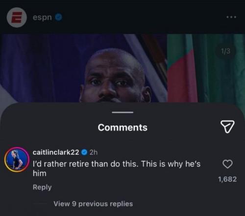 這個節目發出來后,說過詹姆斯是歷史第一人的女籃超巨克拉克就現身評論區,表示戒掉愛好的話,她寧愿退役。克拉克這樣寫:我寧愿退役也不會戒掉愛好!這就是詹姆斯之所以是詹姆斯的原因。