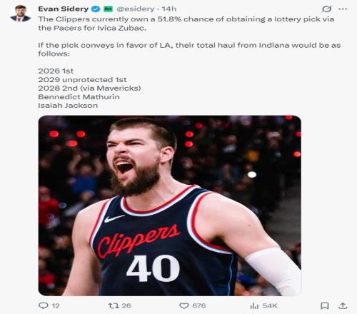 根據《福布斯體育》記者埃文-斯迪瑞的報道,步行者這個2026年首輪簽有51.8%的概率是樂透簽,換言之步行者為了得到祖巴茨犧牲了1個樂透簽、2029年不保護首輪(是否樂透還未知)但這足以扎心洛杉磯湖人隊。